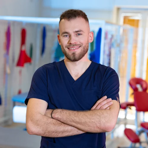 Практик.  Детский физиотерапевт Клинического отделения новорождённых с подразделением интенсивной терапии и патологии новорождённых Клинического регионального реабилитационно-образовательного центра для детей и подростков в Жешуве.