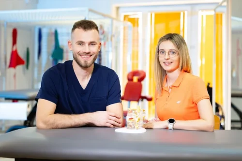 Мы заботимся о качестве образования на двух уровнях: системном и индивидуальном. С одной стороны, мы строим программу обучения на основе стандартов Национальной палаты физиотерапевтов, что гарантирует соответствие польским и европейским профессиональным требованиям. С другой стороны, мы обучаем в небольших группах, заботясь о комфорте студентов, индивидуальной поддержке и развитии мягких навыков, таких как коммуникация и эмпатия.