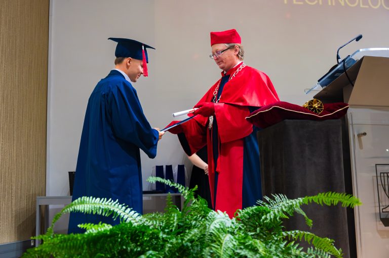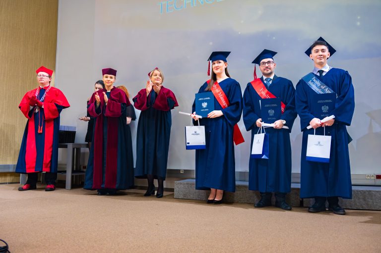 После вдохновляющей напутственной речи настал долгожданный момент вручения дипломов и поздравительных писем. Дипломы вручали Проректор по научной работе и международному сотрудничеству проф. Konrad Szocik, Декан кафедры Прикладной информатики проф. Teresa Mroczek и Заместитель декана кафедры Менеджмента мгр. Małgorzata Leśniowska-Gontarz. После того как все выпускники были приглашены на сцену для вручения дипломов, настал час любимой традиции выпускников – перекидывания кисточки на шапочке слева направо. Этот символический жест обозначает их официальное вступление в ряды выпускников.