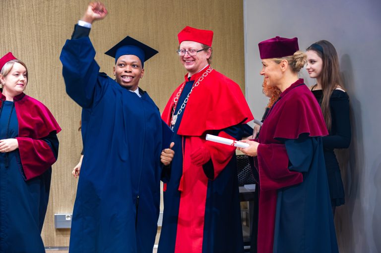 «Я очень благодарен за возможность провести три года в такой прекрасной стране, как Польша. Эта страна дала мне многое: я встретил замечательных преподавателей и нашёл новых друзей. Я с глубоким уважением отношусь к польской культуре и традициям. Отдельная благодарность моей семье, особенно отцу, который сегодня здесь вместе со мной» ,– отметил Alireza Hoghoughi Esfahani, выпускник факультета Менеджмент.