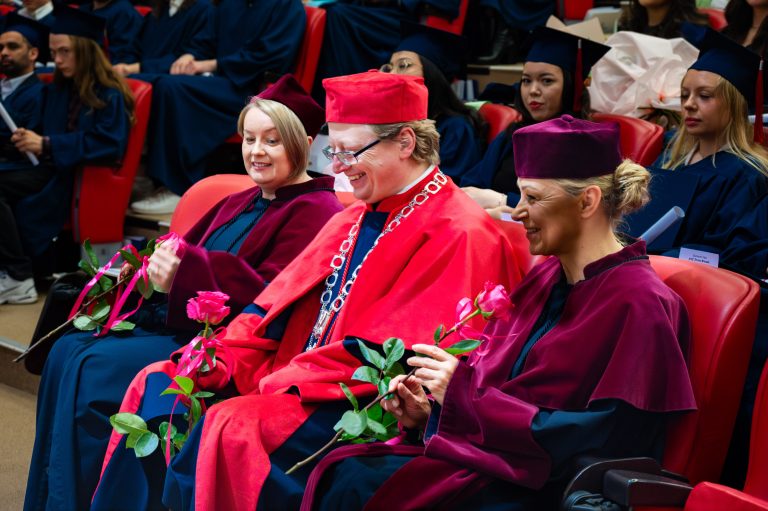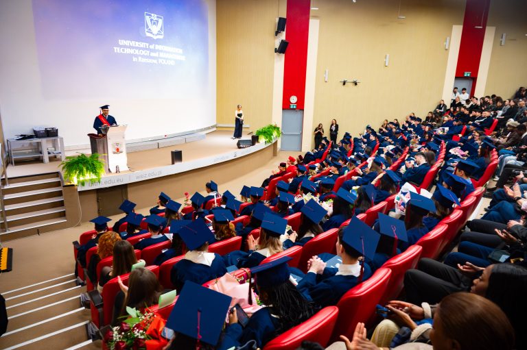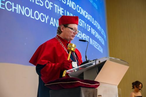 Звуки полонеза A-dur Фридерика Шопена наполнили зал торжественной атмосферой и открыли праздничную церемонию, посвящённую выпуску студентов англоязычных направлений. Проректор по научной работе и международному сотрудничеству проф. Konrad Szocik, поприветствовал присутствующих и обратился к выпускникам:
